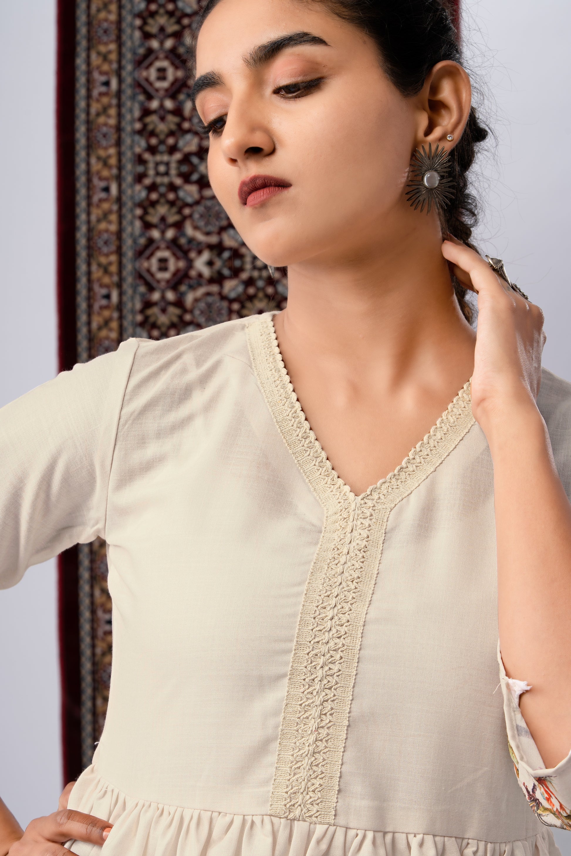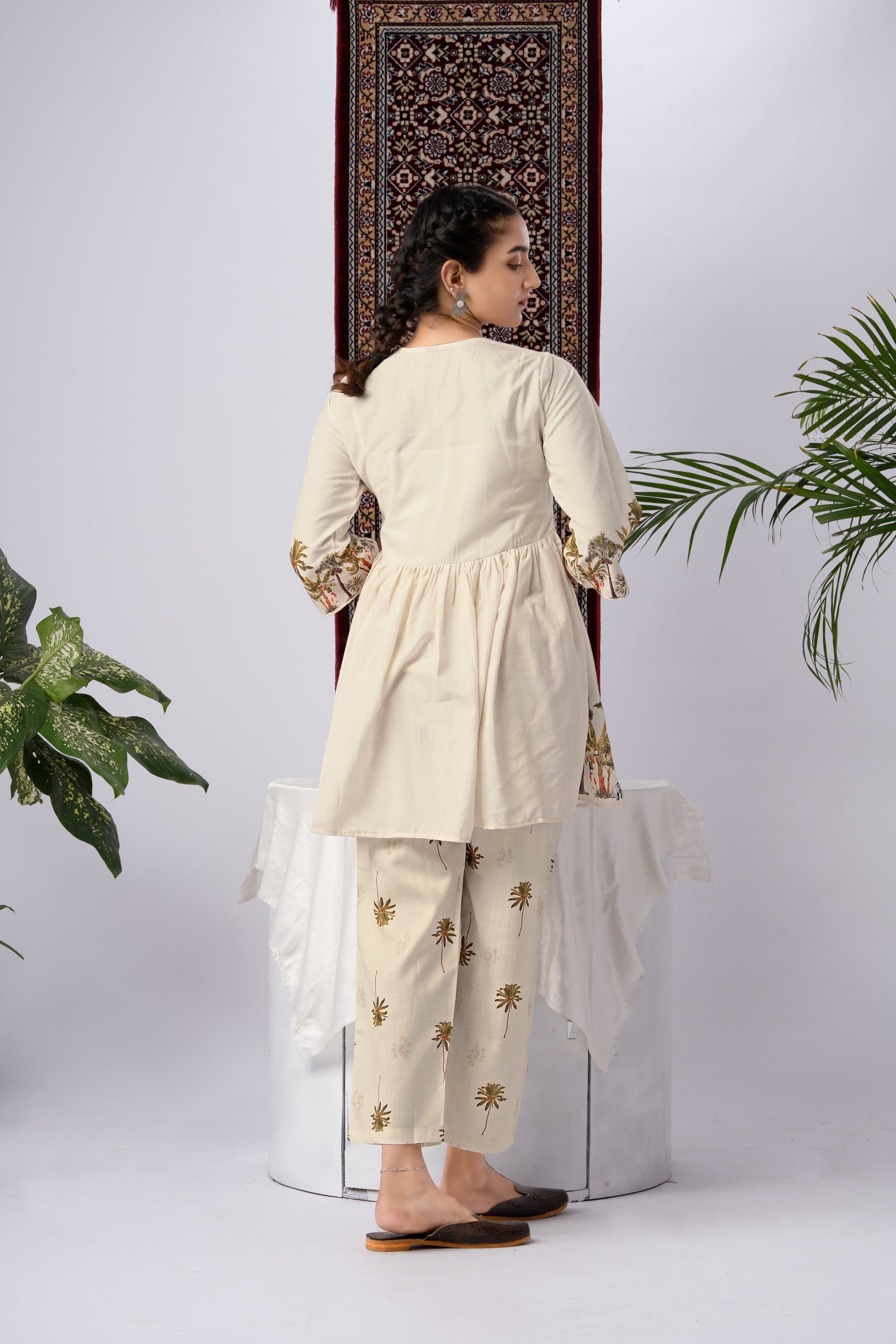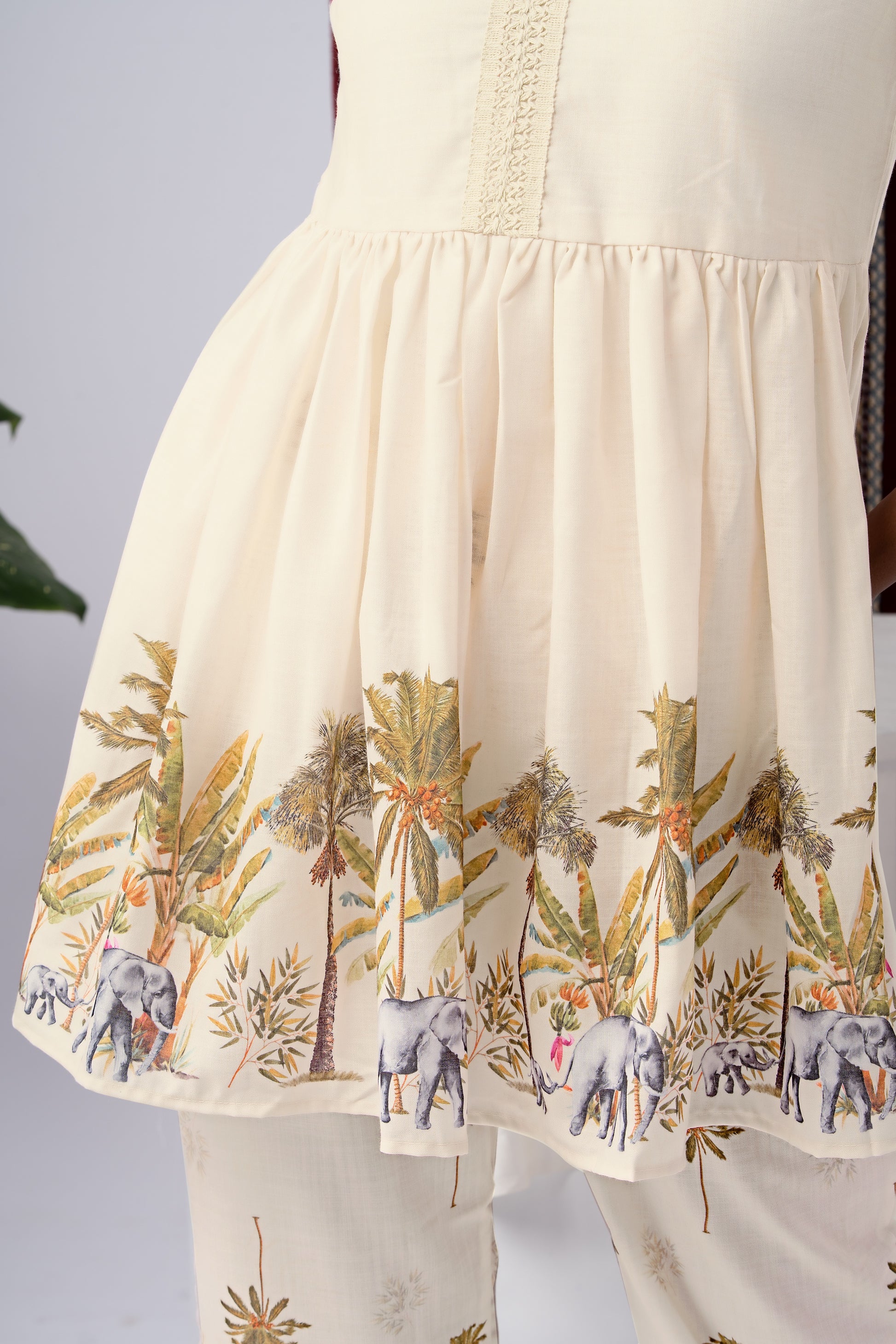 Cream & Beige Elephant Print Viscose Rayon Co-Ord Set