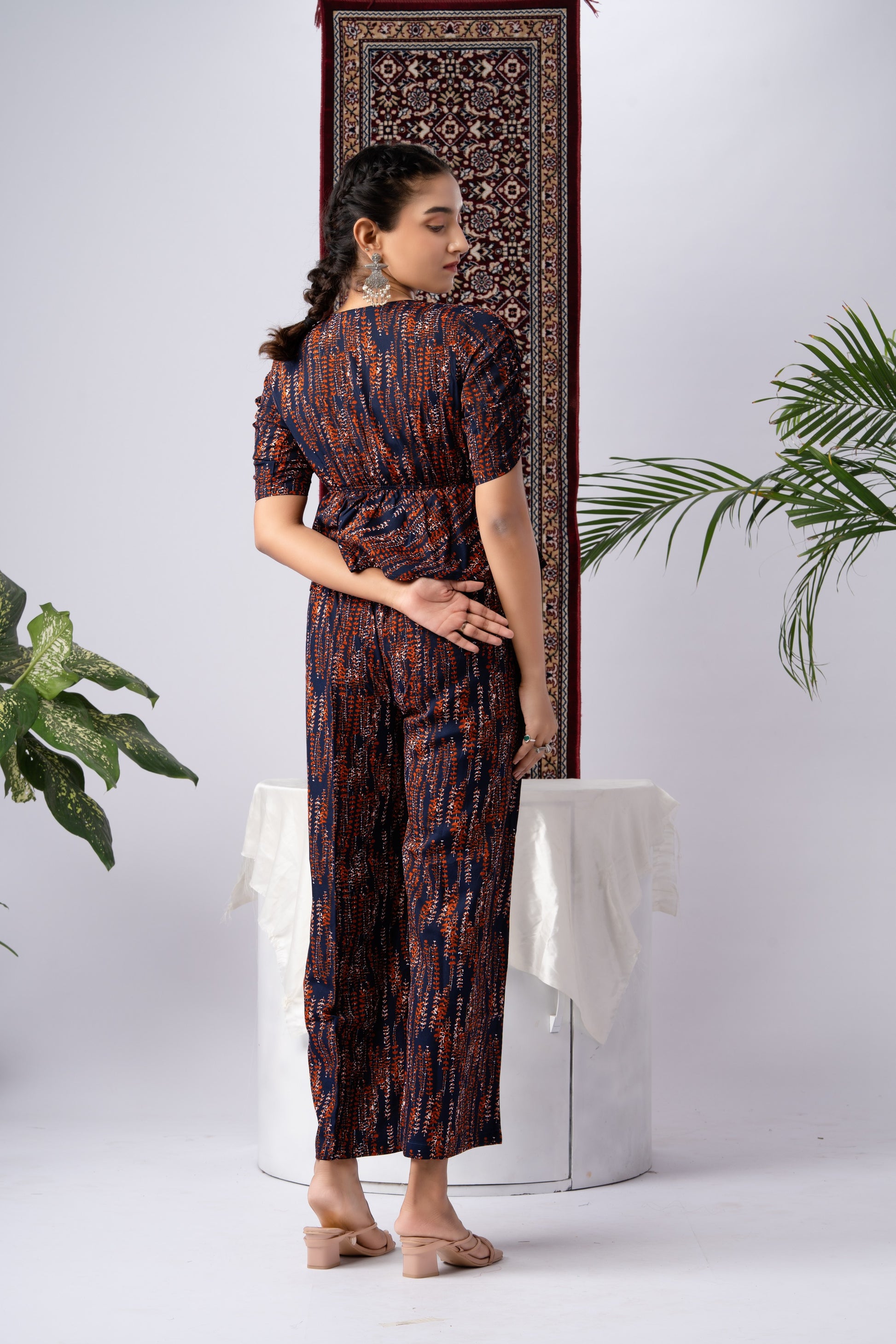 Navy Blue & Abstract Print Pure Silk Co-Ord Set
