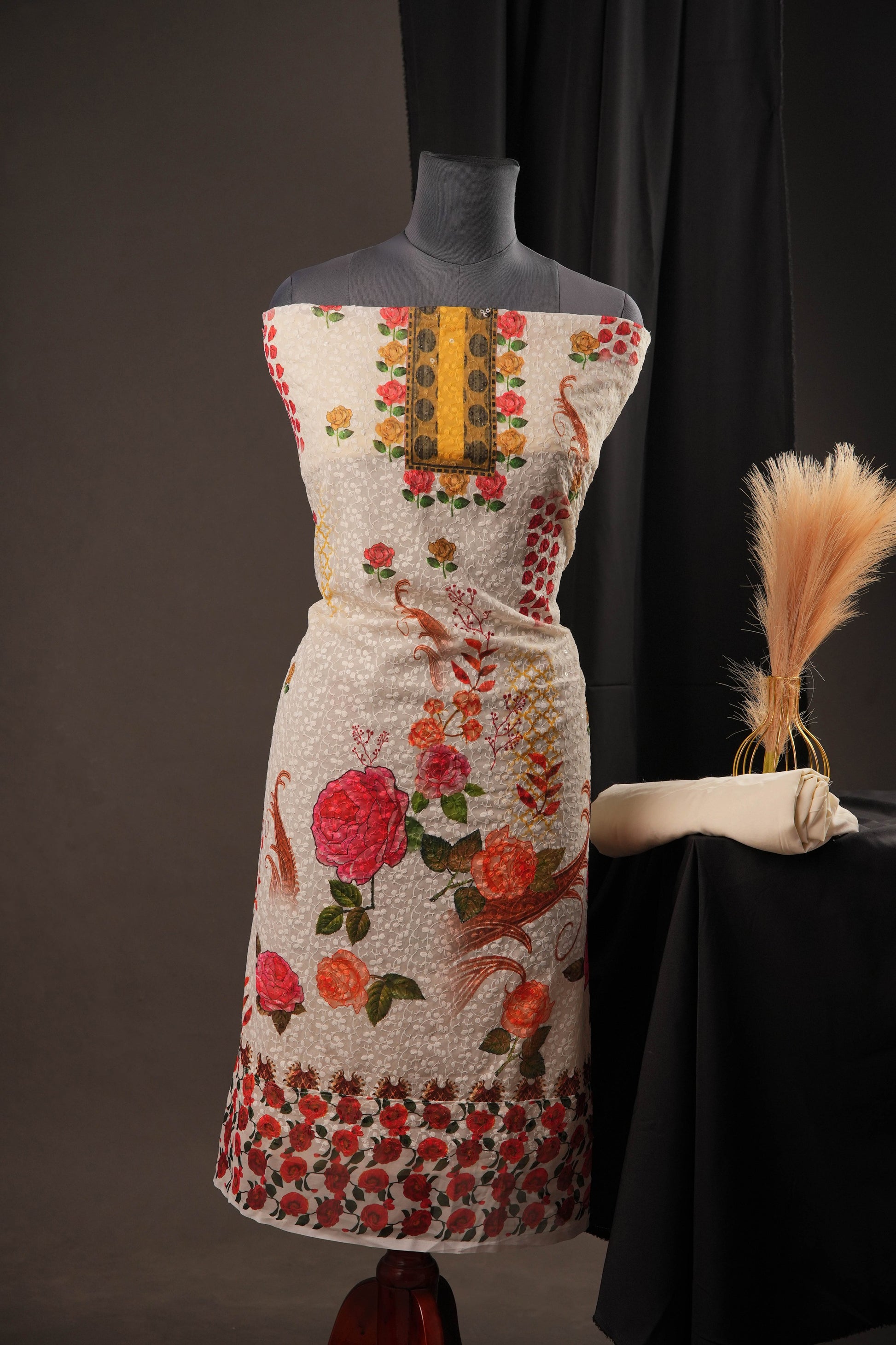 Work: Digital Print all over with Thread Embroidery on Neck Panel