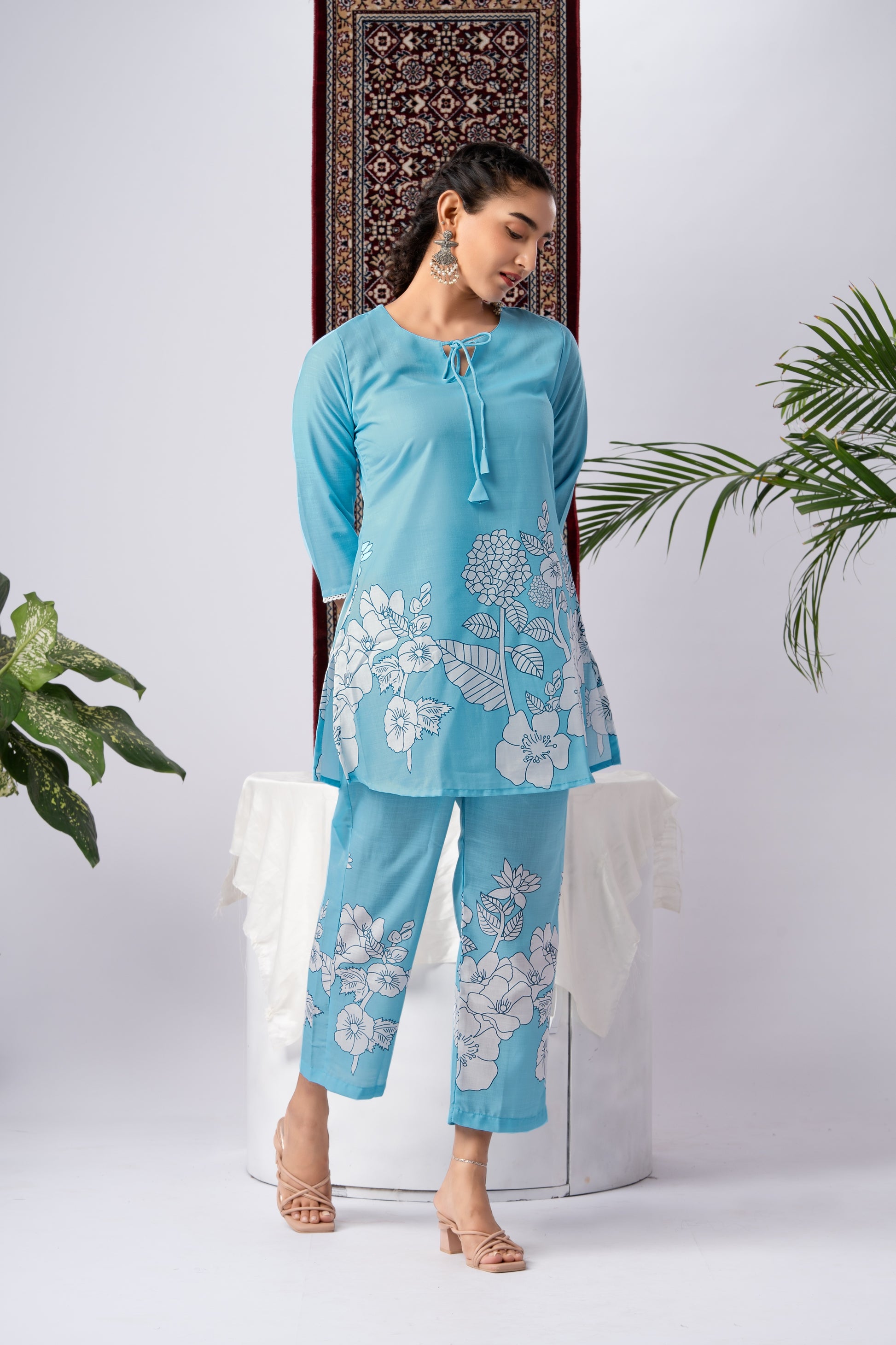 Sky Blue Floral Print Viscose Rayon Co-Ord Set